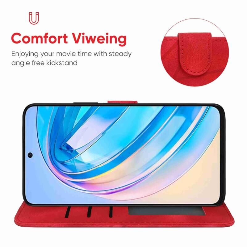 Για Honor X8a Skin Feel γεωμετρικές γραμμές δερμάτινη θήκη τηλεφώνου (Κόκκινο)
