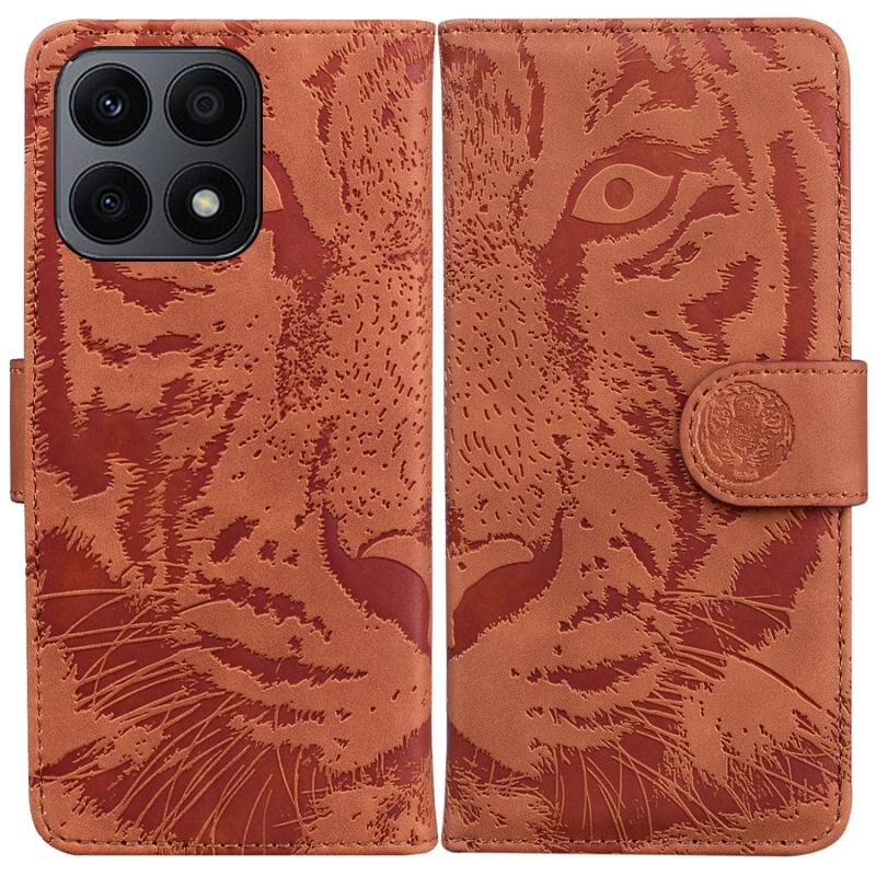 Θήκη τηλεφώνου από δέρμα με σχέδιο Tiger Embossing για Honor X8a (Μαύρο)
