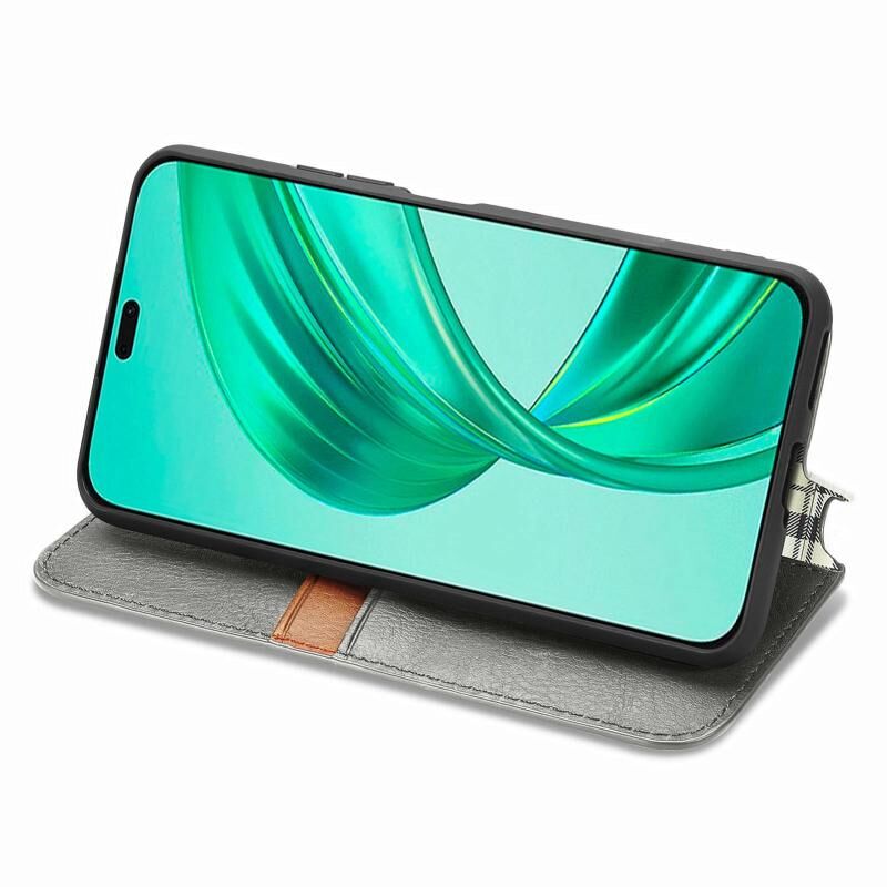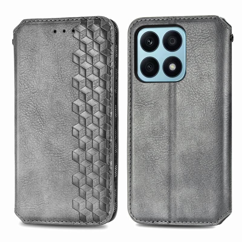 Για Honor X8b 4G Cubic Grid πιέζεται μαγνητική δερμάτινη θήκη τηλεφώνου (γκρι)