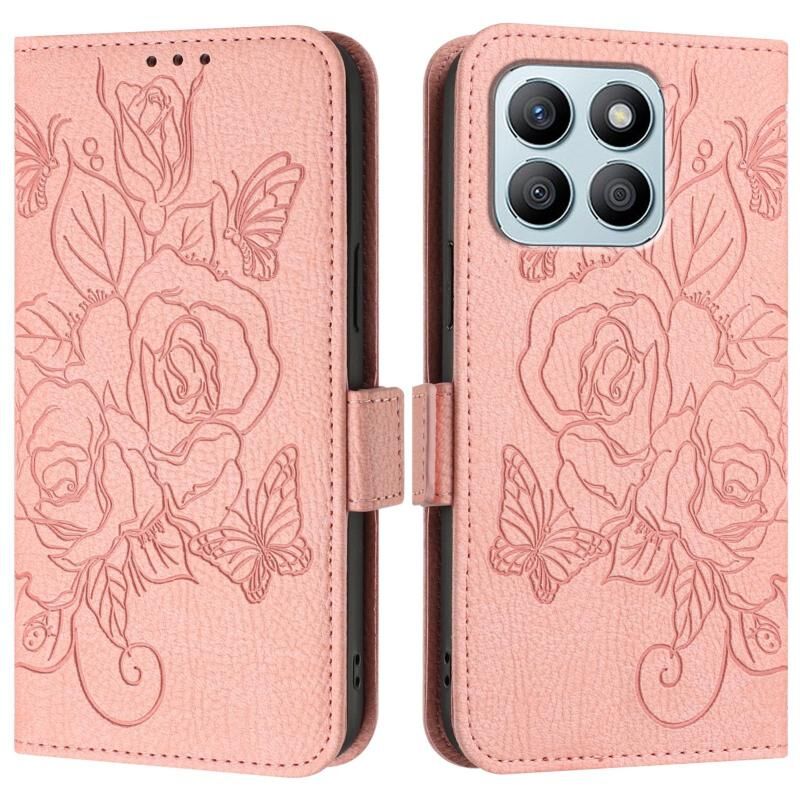 Θήκη τηλεφώνου από δέρμα με ανάγλυφο σχέδιο τριαντάφυλλου και προστασία RFID κατά της κλοπής για Honor X8b 4G (ρόζ)