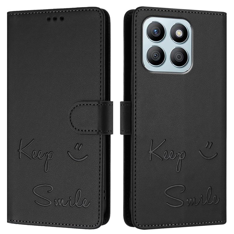 For Honor X8b 4G Global Smile Embossing RFID Leather Phone Case(Black)