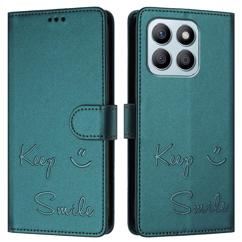 For Honor X8b 4G Global Smile Embossing RFID Leather Phone Case(Peacock Green)