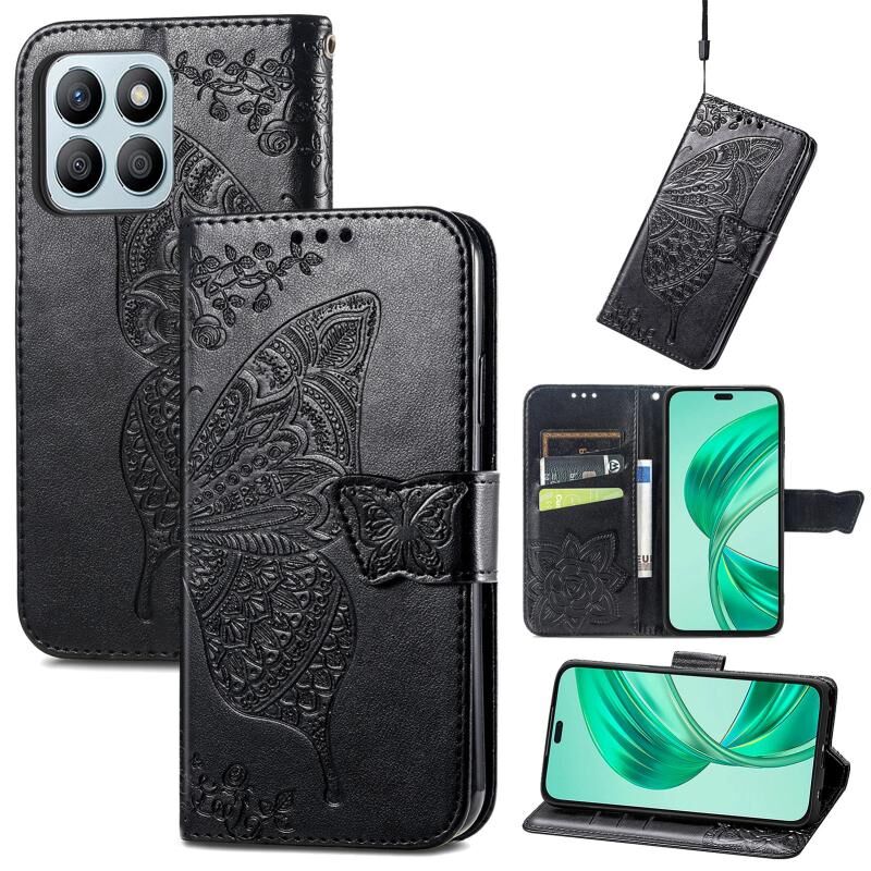 Θήκη τηλεφώνου Honor X8b Butterfly Love Flower Embossed Leather (Μαύρο)