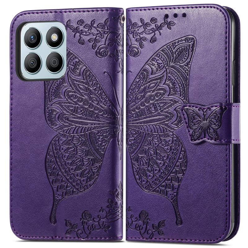 For Honor X8b Butterfly Love Flower Embossed Leather Phone Case(Dark Purple)