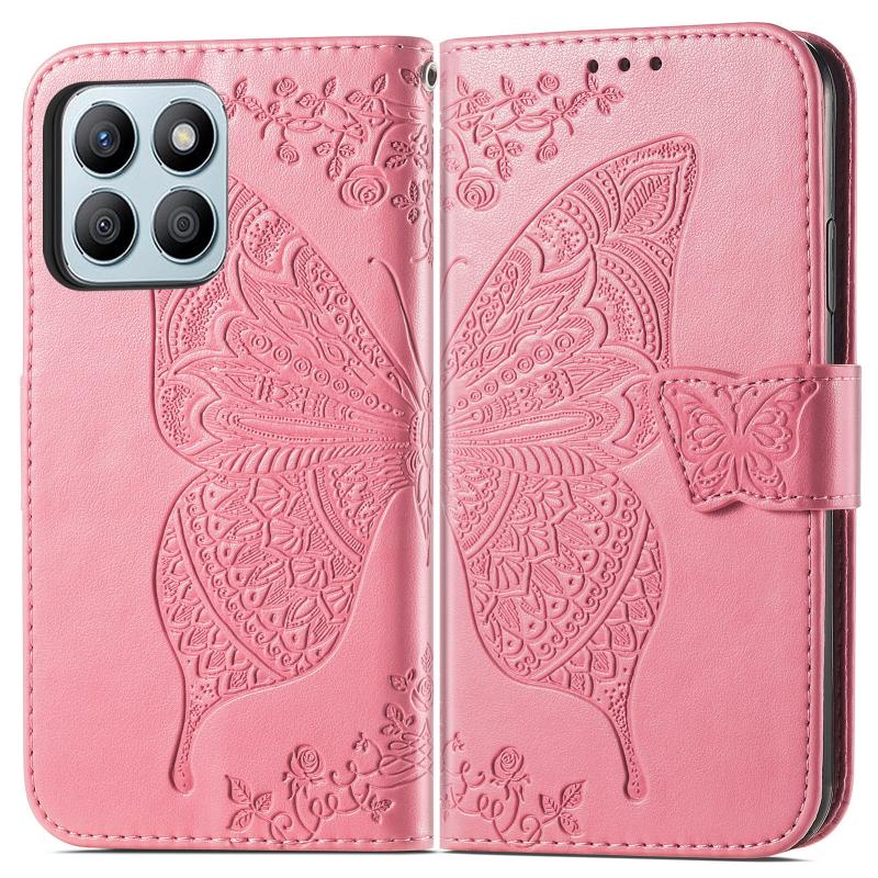 For Honor X8b Butterfly Love Flower Embossed Leather Phone Case(Pink)