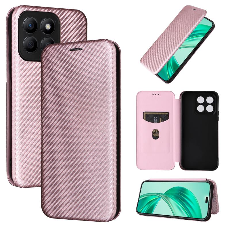 For Honor X8b Carbon Fiber Texture Flip Leather Phone Case(Pink)