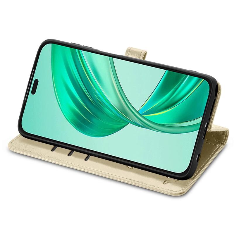 Θήκη τηλεφώνου Honor X8b με ανάγλυφο σχέδιο γάτας και σκύλου από δέρμα (Χρυσός)