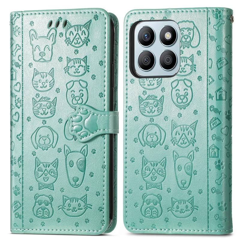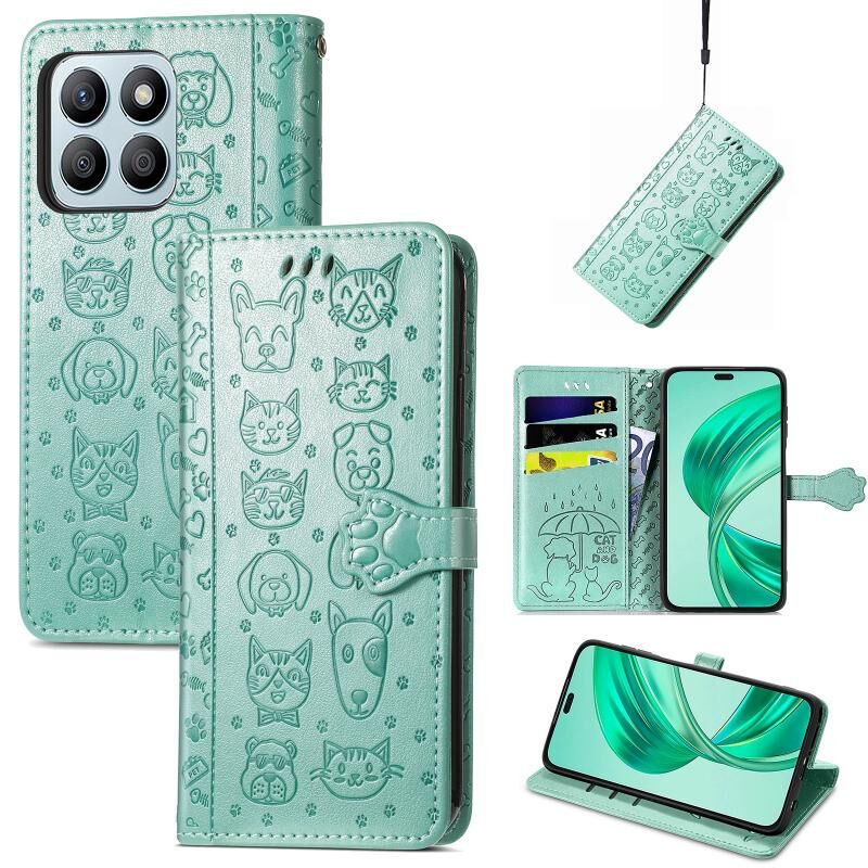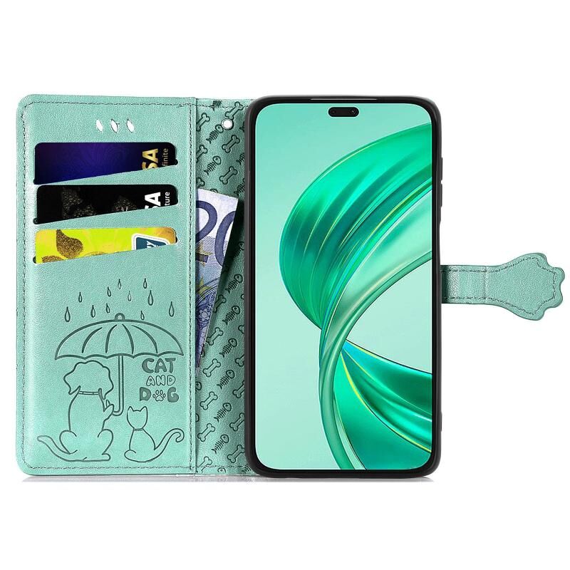 Θήκη τηλεφώνου Honor X8b με ανάγλυφο σχέδιο γάτας και σκύλου από δέρμα (Χρυσορόδινο)