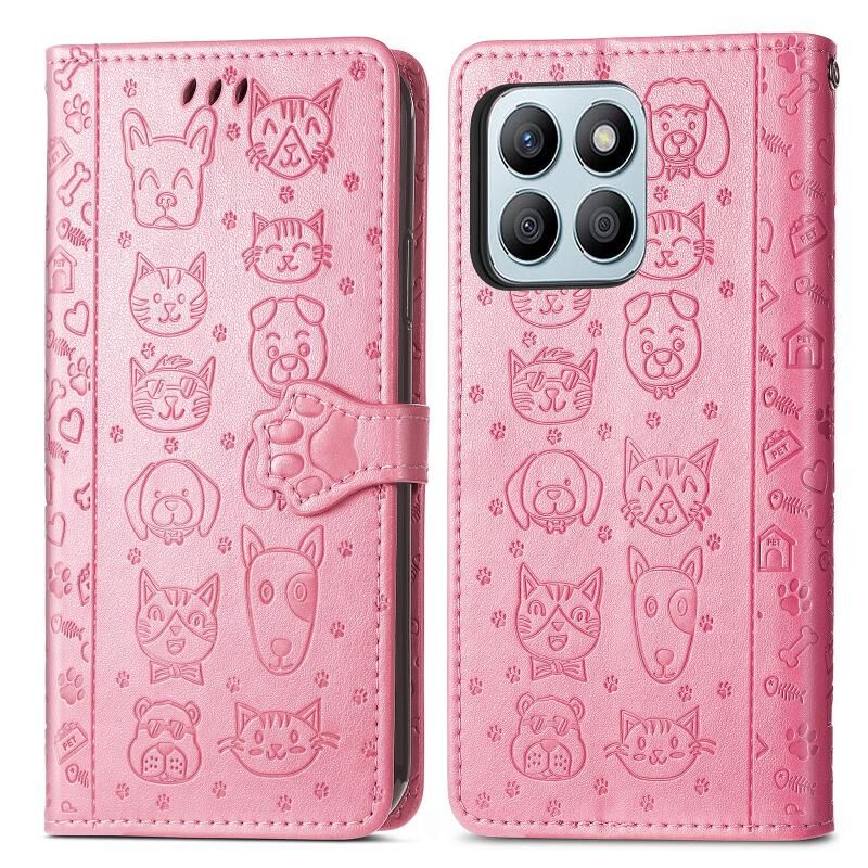 Θήκη τηλεφώνου Honor X8b με ανάγλυφο σχέδιο γάτας και σκύλου από δέρμα (Χρυσορόδινο)