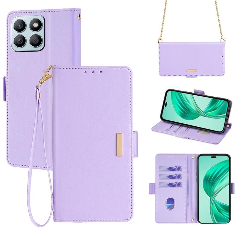 Για Honor X8b Crossbody αλυσίδα δερμάτινη θήκη τηλεφώνου (μωβ)