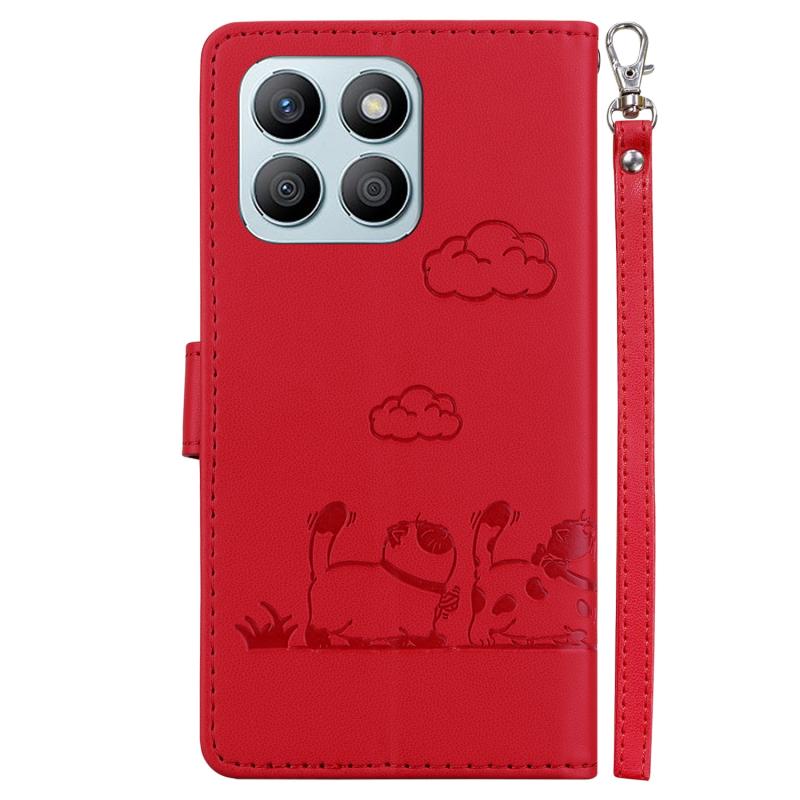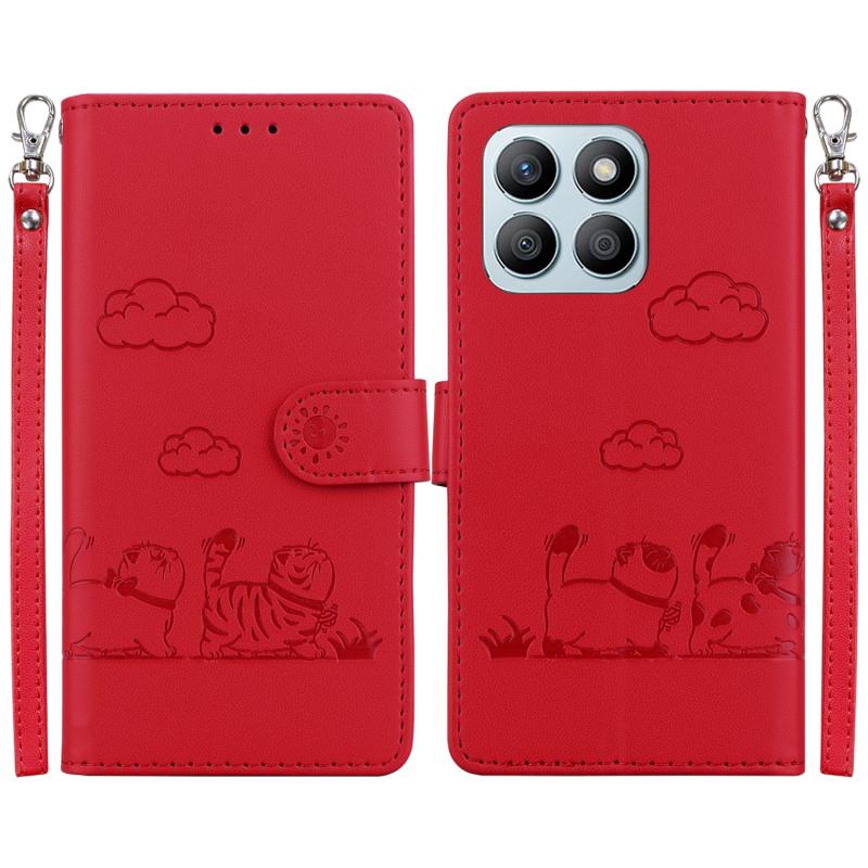 For Honor X8b Cute Cats RFID Leather Phone Case(Red)