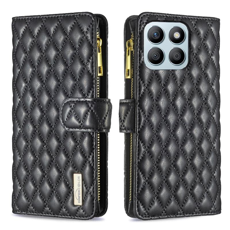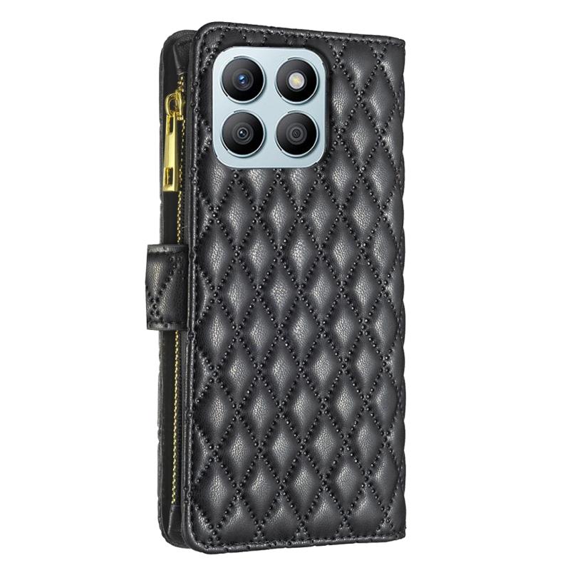 For Honor X8b Diamond Lattice Zipper Wallet Leather Flip Phone Case(Black)