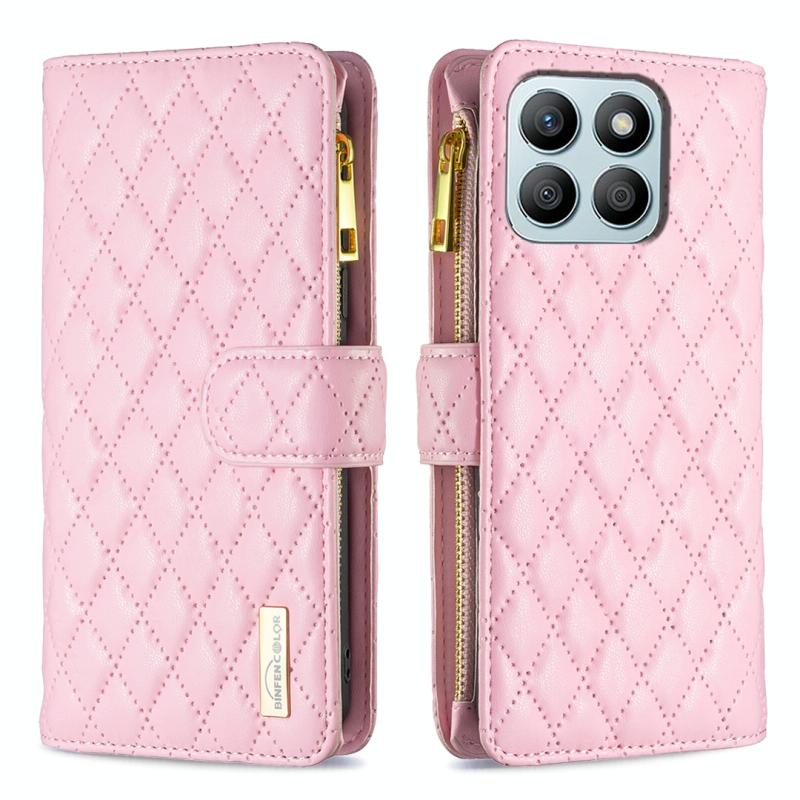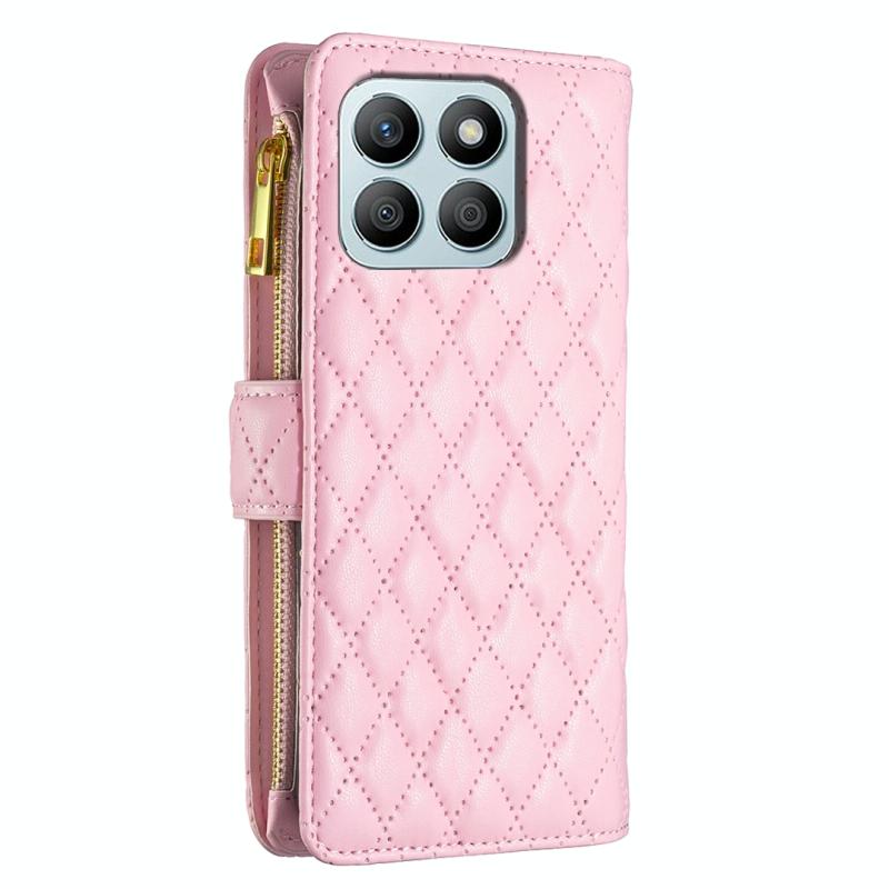 For Honor X8b Diamond Lattice Zipper Wallet Leather Flip Phone Case(Pink)