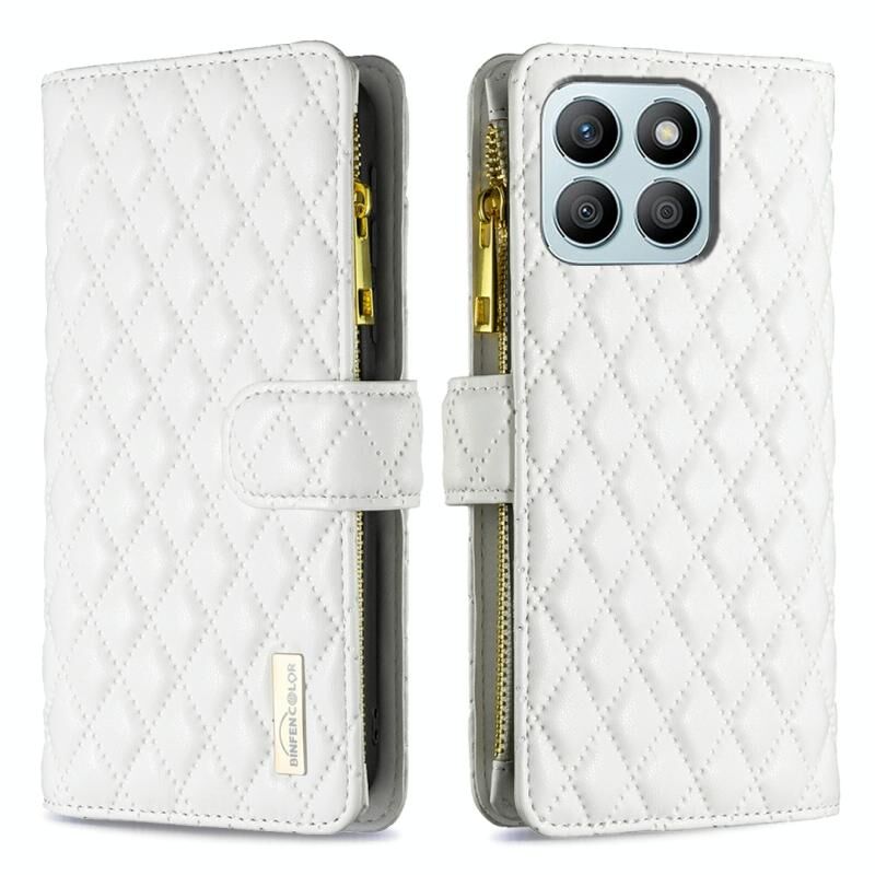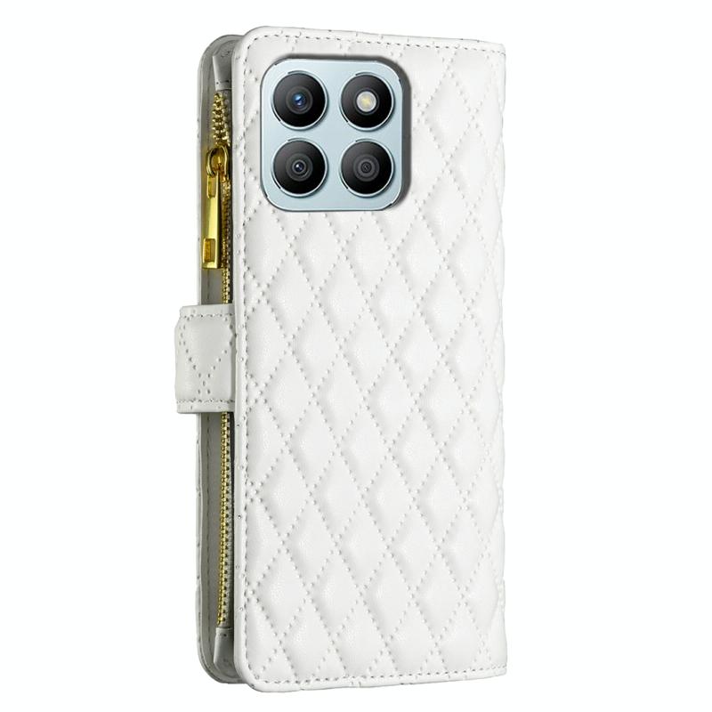 For Honor X8b Diamond Lattice Zipper Wallet Leather Flip Phone Case(White)