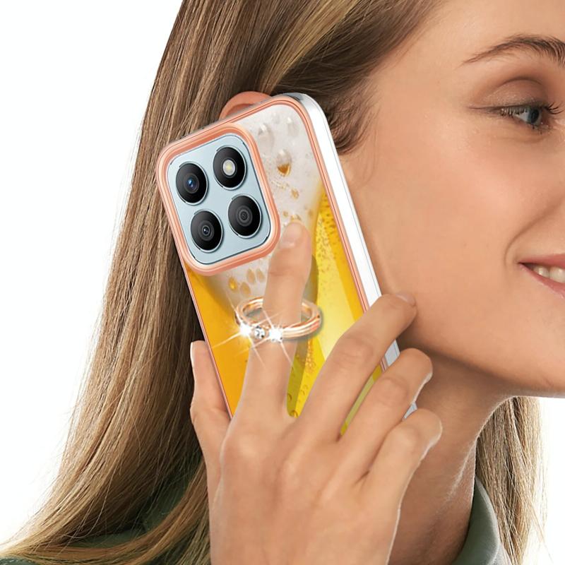 Θήκη τηλεφώνου For Honor X8b με ηλεκτρολυτική επιμετάλλωση, διπλής όψης IMD με δακτύλιο στήριξης (Μπύρα βαρελίσια)
