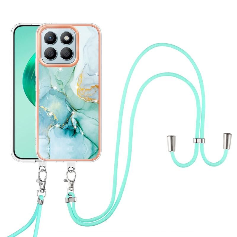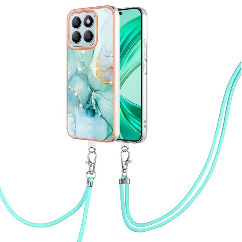 Θήκη τηλεφώνου για Honor X8b με ηλεκτρολυτική επίστρωση, σχέδιο μάρμαρου, διπλής όψης IMD με κορδόνι (Μωβ 001)