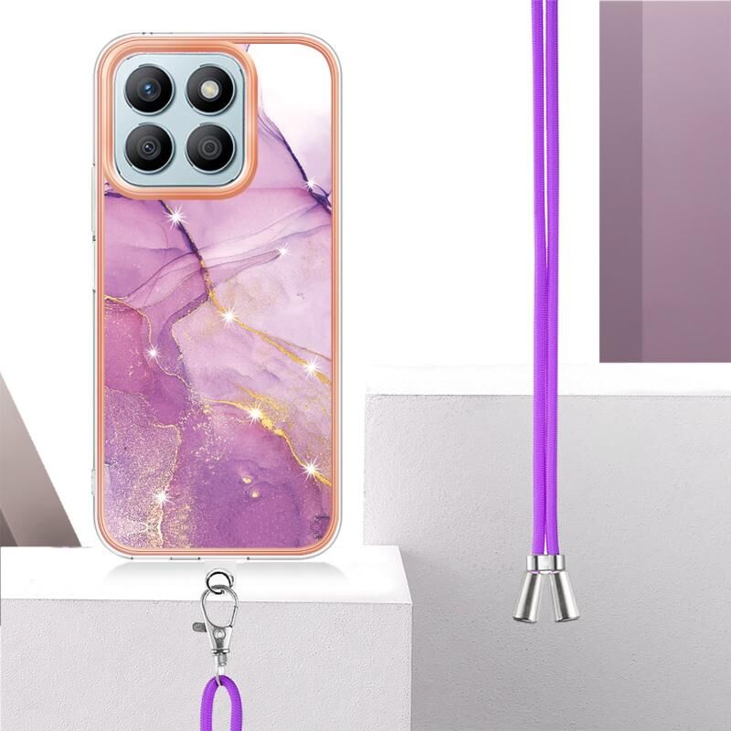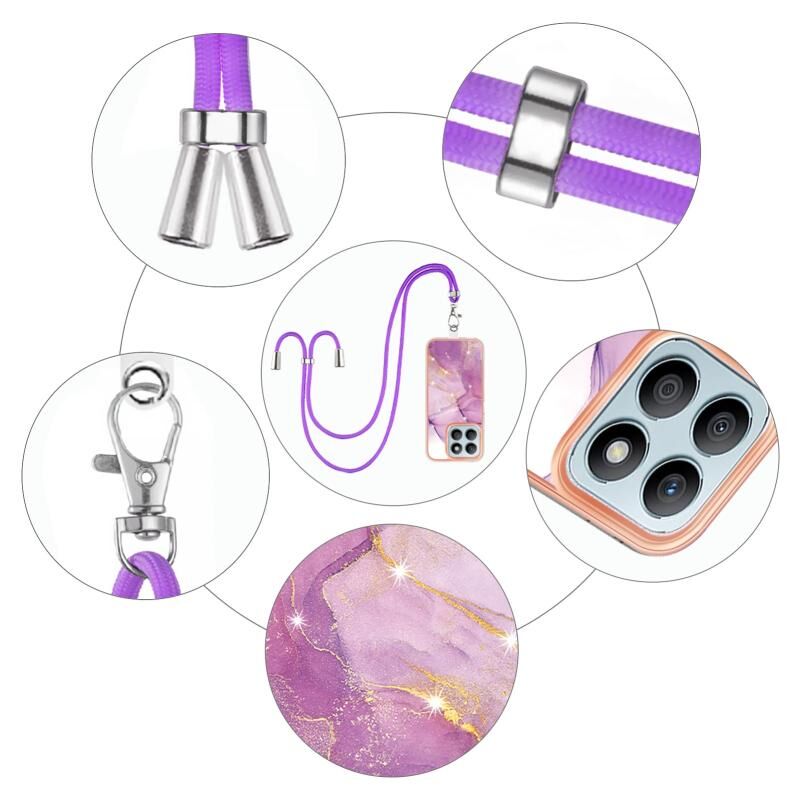 Θήκη τηλεφώνου για Honor X8b με ηλεκτρολυτική επίστρωση, σχέδιο μάρμαρου, διπλής όψης IMD με κορδόνι (Μωβ 001)