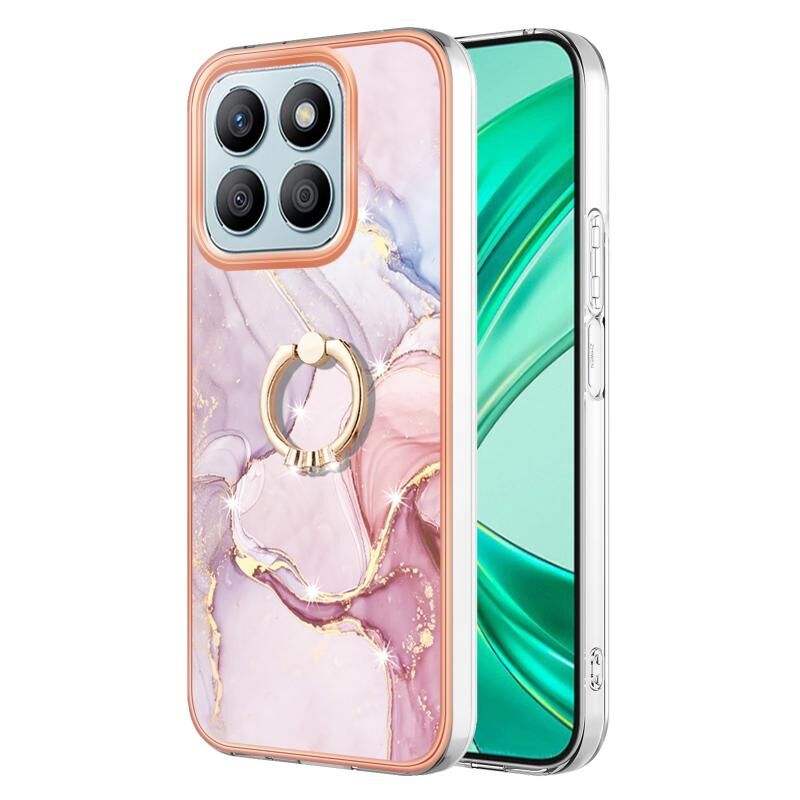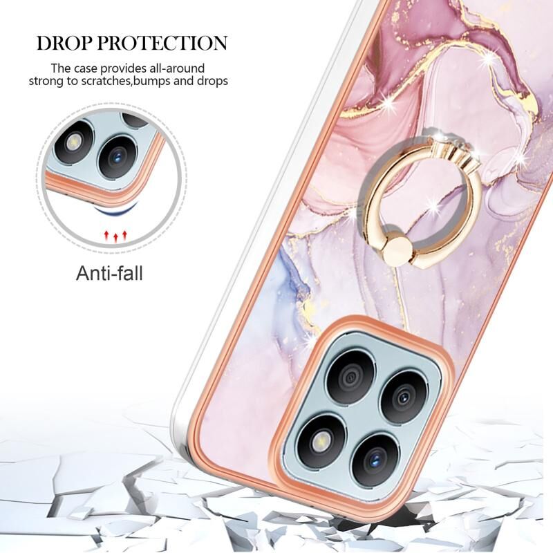 Θήκη κινητού τηλεφώνου για Honor X8b με ηλεκτρολυτική επίστρωση, σχέδιο μάρμαρου IMD, από TPU με δακτύλιο στήριξης (Λευκό 006)