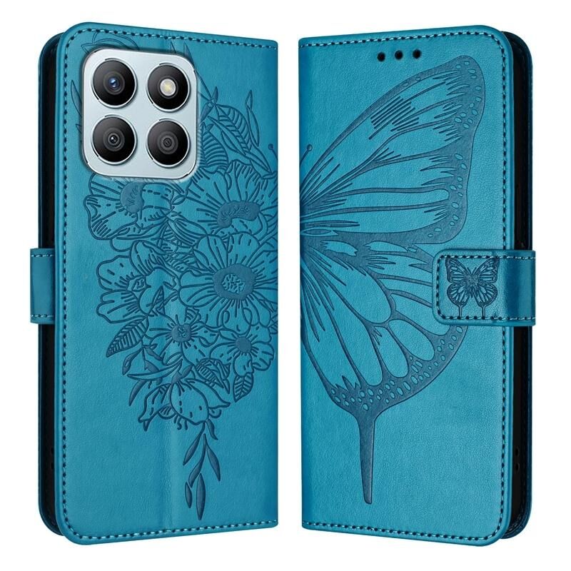 Για Honor X8b ανάγλυφη πεταλούδα δερμάτινη θήκη τηλεφώνου (μπλε)