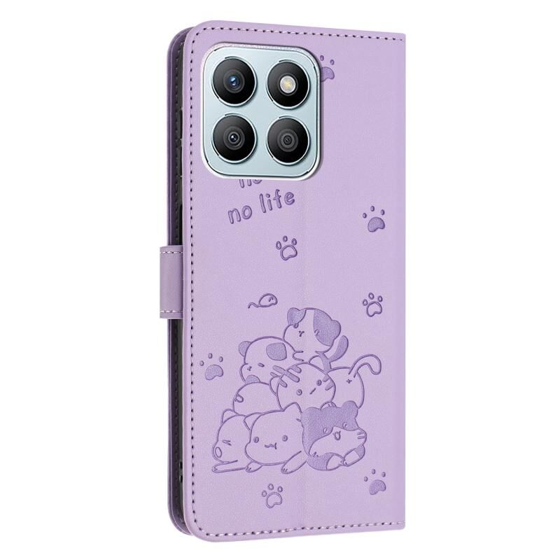Θήκη τηλεφώνου δερμάτινη με ανάγλυφο γατάκι και λουρί για Honor X8b (Μωβ)