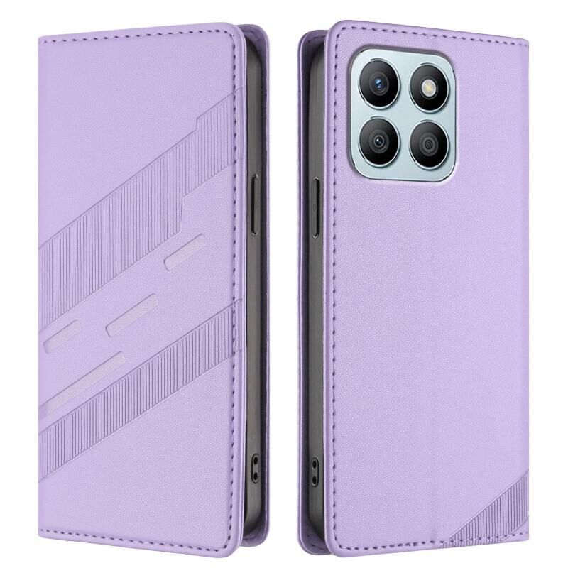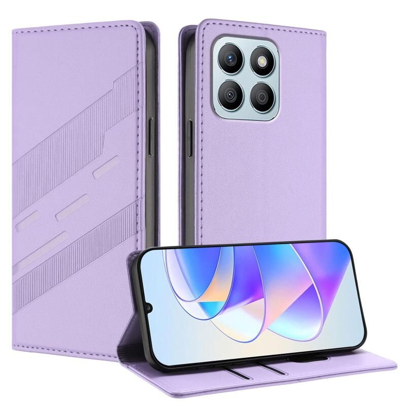 Θήκη τηλεφώνου από δέρμα retro, πολυλειτουργική, με ανάγλυφο σχέδιο για Honor X8b (ανοιχτό μωβ)