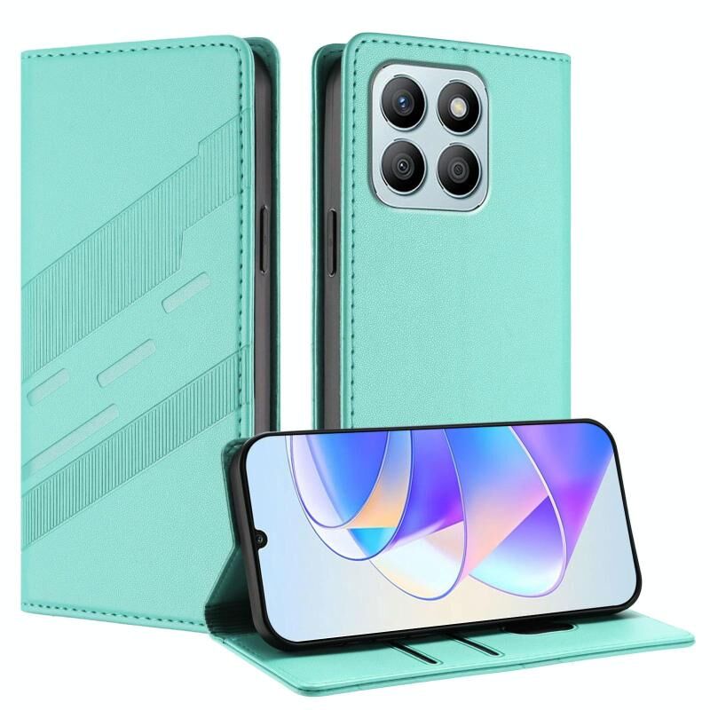 Θήκη τηλεφώνου από δέρμα retro, πολυλειτουργική, με ανάγλυφο σχέδιο για Honor X8b (Μέντας πράσινο)