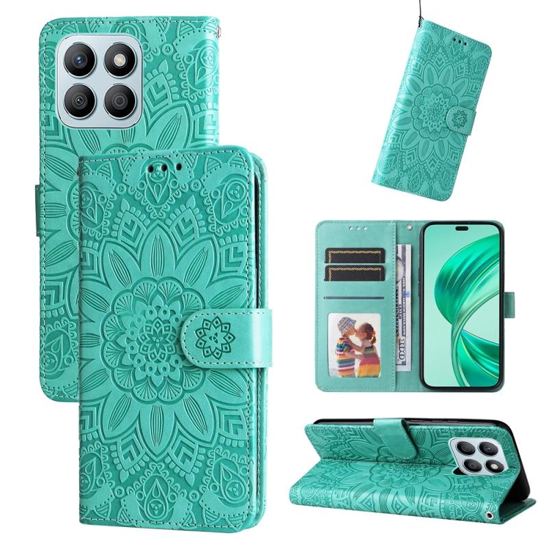 For Honor X8b Embossed Sunflower Leather Phone Case(Green)