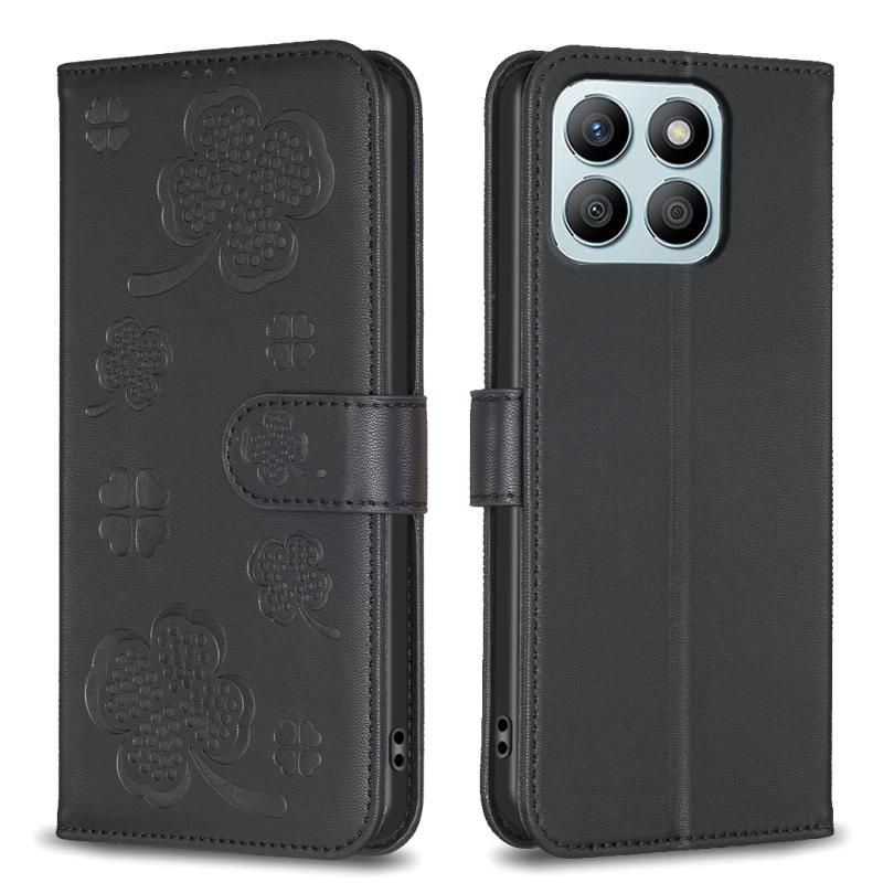For Honor X8b Four-leaf Embossed Leather Phone Case(Black)