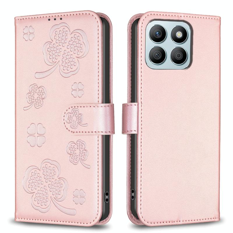 For Honor X8b Four-leaf Embossed Leather Phone Case(Pink)