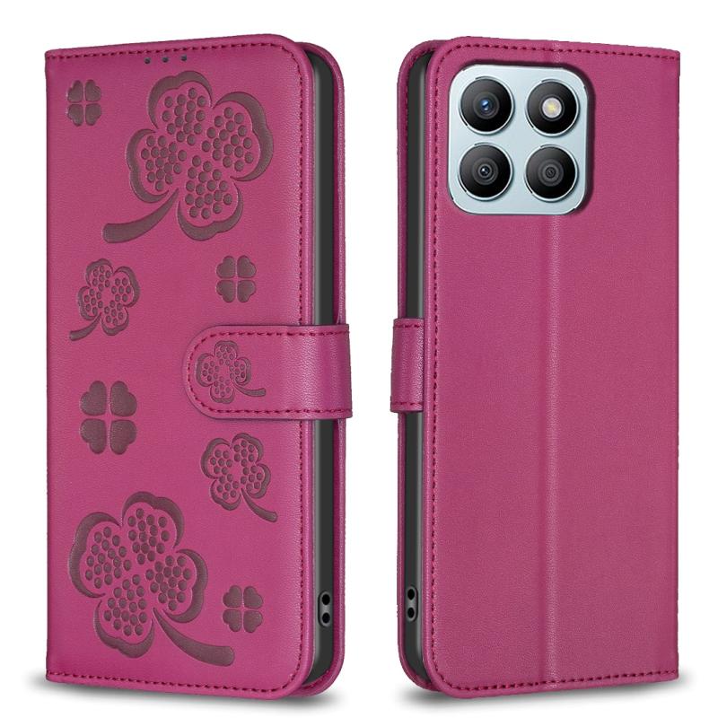 For Honor X8b Four-leaf Embossed Leather Phone Case(Rose Red)