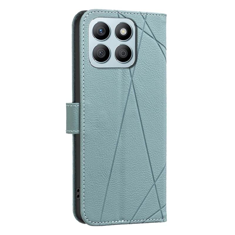 Θήκη τηλεφώνου δερμάτινη με μοτίβο γεωμετρικού σχεδίου και τεχνολογία RFID για Honor X8B (Καφέ)