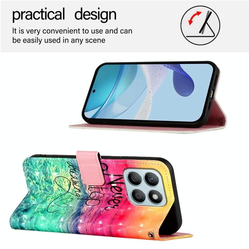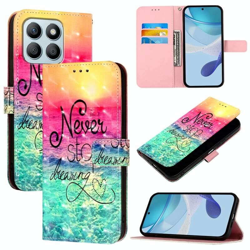Θήκη τηλεφώνου από δέρμα με οριζόντια αναδίπλωση και τρισδιάστατη βαφή για Honor X8b Global (Κυνηγώντας Όνειρα)