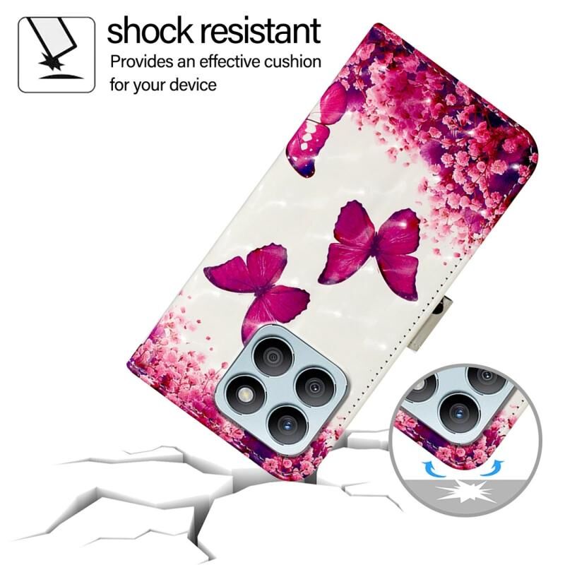 Θήκη τηλεφώνου από δέρμα με οριζόντια αναδίπλωση και τρισδιάστατη βαφή για Honor X8b Global (Ροζ Πεταλούδα)