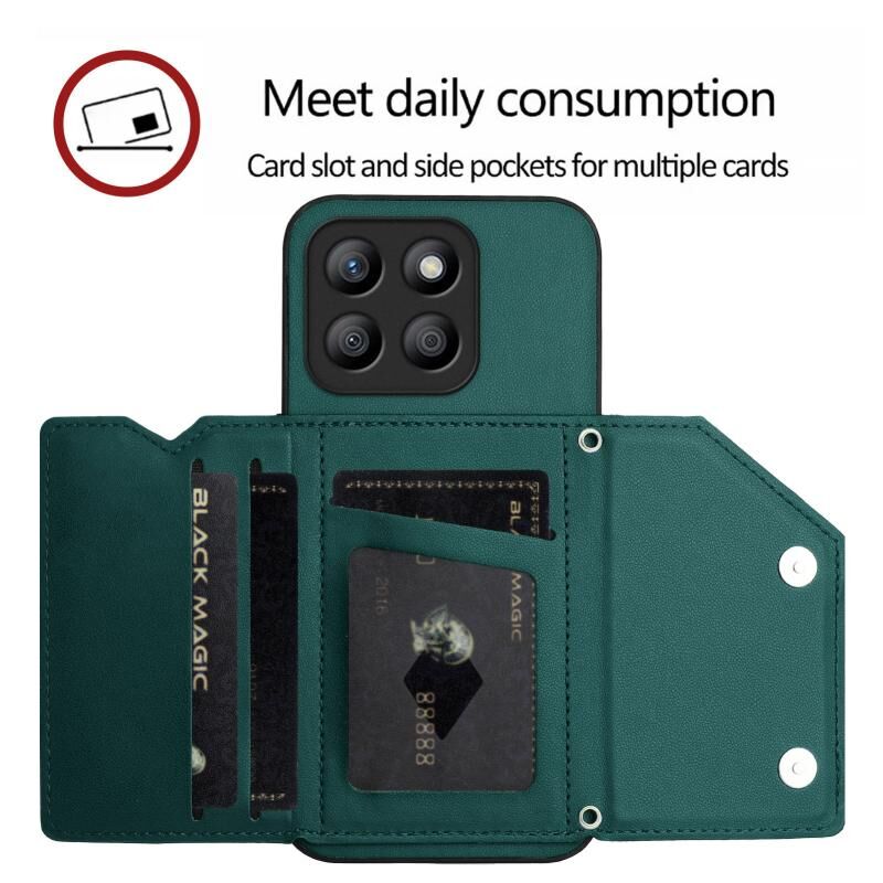 Θήκη τηλεφώνου για Honor X8b Global με αίσθηση δέρματος, τέσσερις θήκες καρτών και λουρί καρπού (Ροζ)