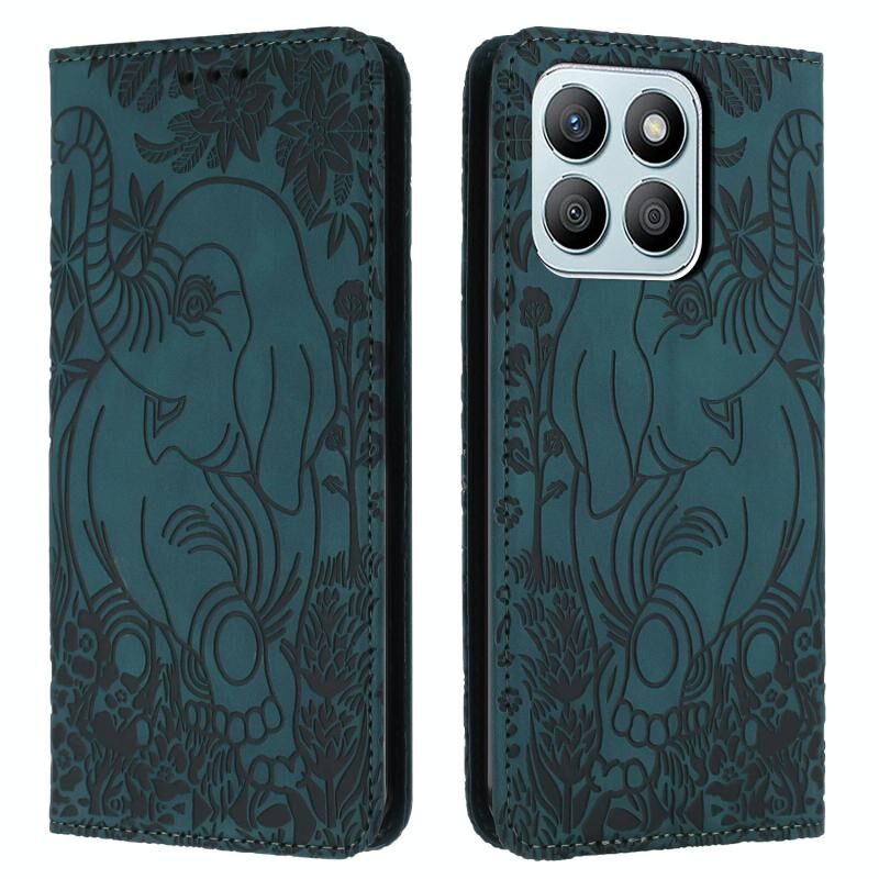 For Honor X8b Retro Elephant Embossed Leather Phone Case(Green)