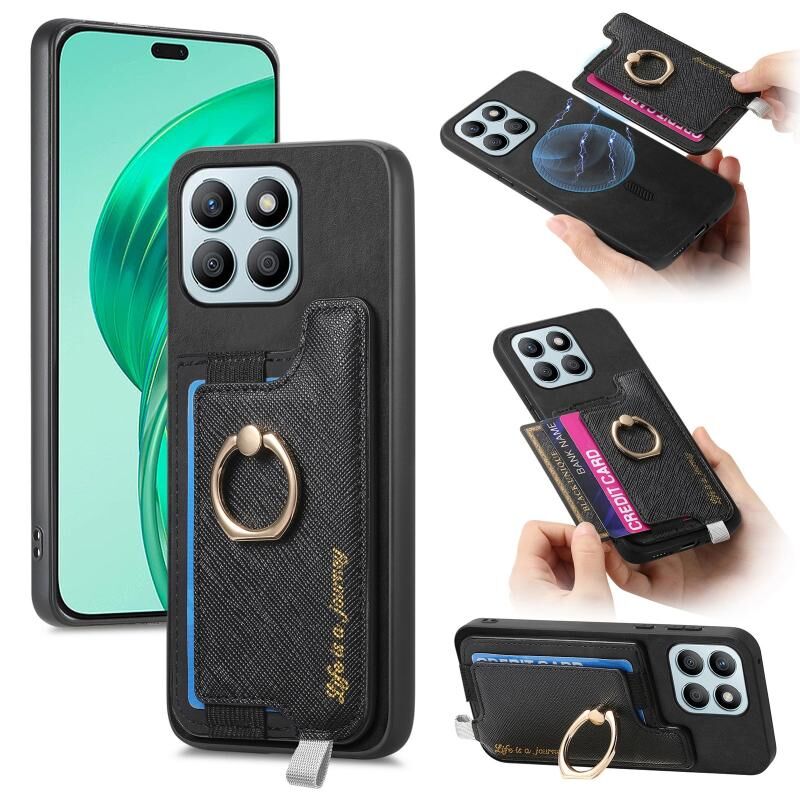 Θήκη κινητού τηλεφώνου For Honor X8b Retro Magsafe Cross Δερμάτινος Δακτύλιος Στήριξης Θήκη Κάρτας (Μπλε)