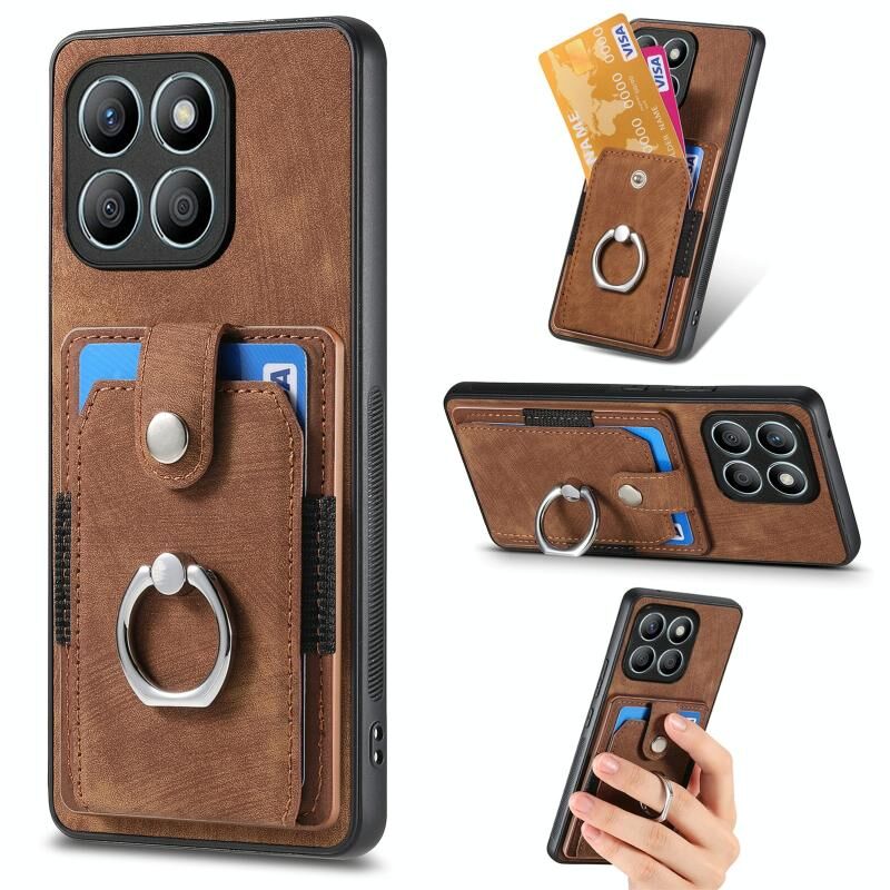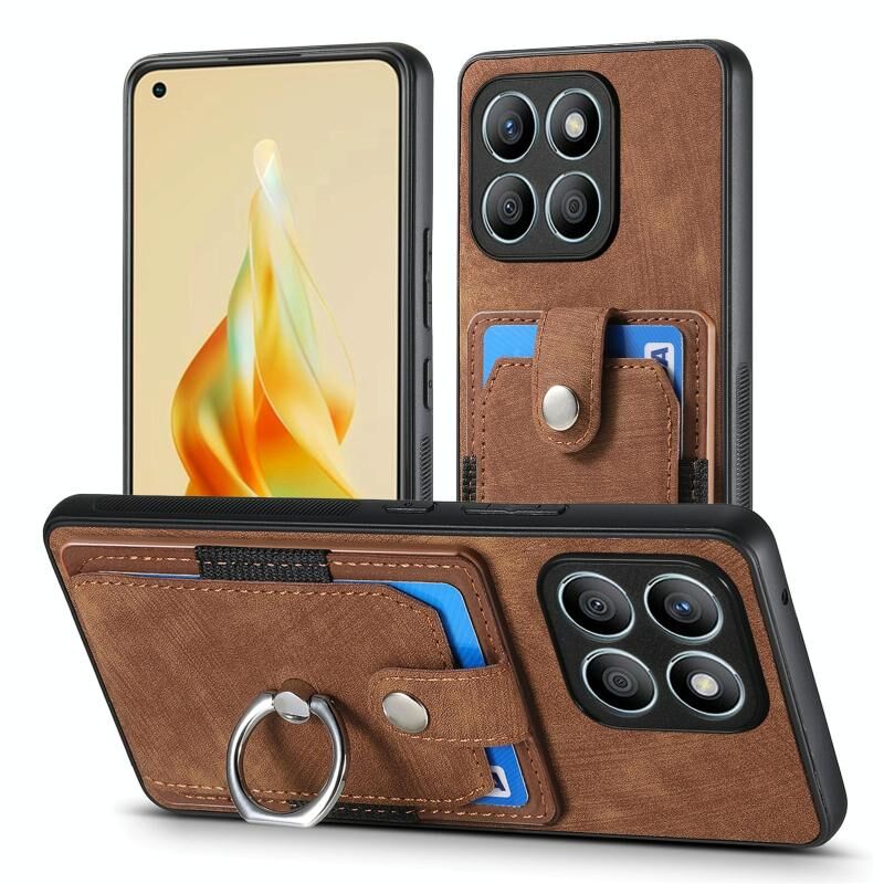 Θήκη κινητού τηλεφώνου Honor X8b Retro Skin-feel Ring Card Wallet (Καφέ)