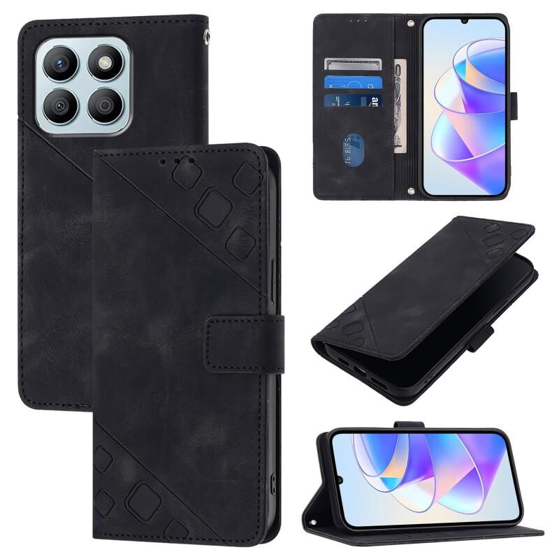 For Honor X8b Skin-feel Embossed Leather Phone Case(Black)