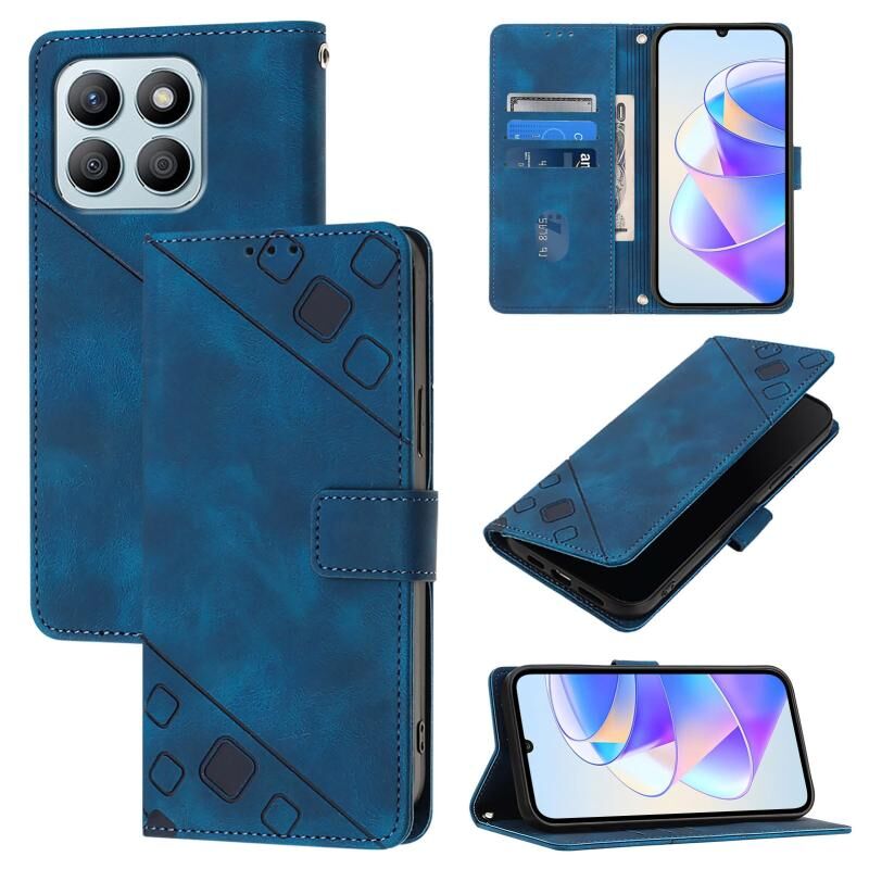 For Honor X8b Skin-feel Embossed Leather Phone Case(Blue)