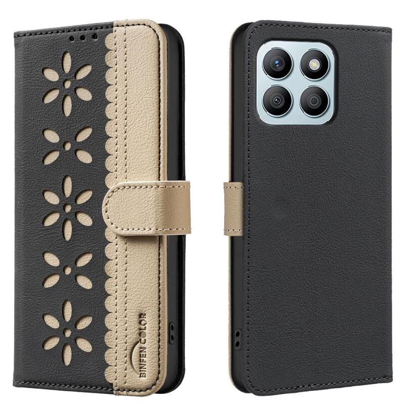 Θήκη τηλεφώνου από δέρμα RFID με κομμένο σχέδιο, πολύχρωμο, με κενό σχέδιο λουλουδιού για Honor X8B (Μαύρο)