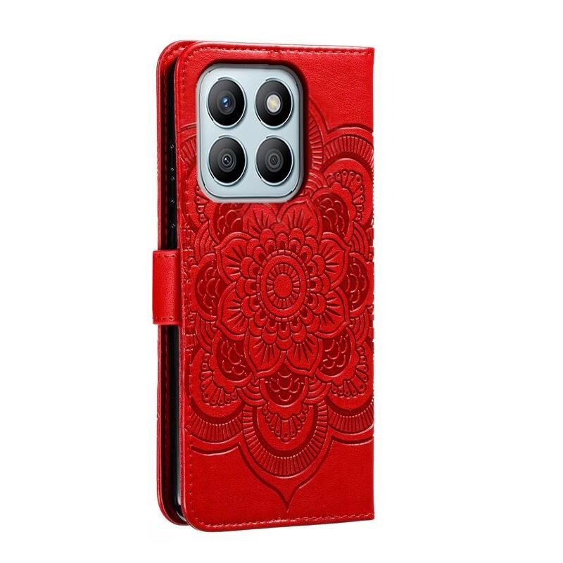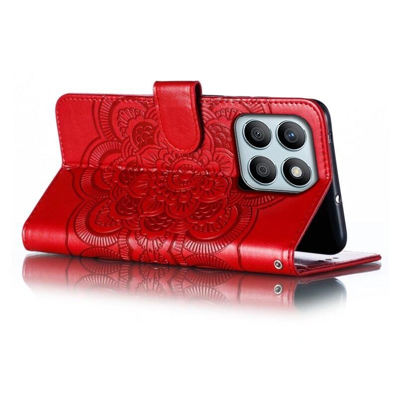Για Honor X8B Sun Mandala ανάγλυφο μοτίβο τηλέφωνο δερμάτινη θήκη (Κόκκινο)