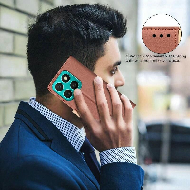 Θήκη τηλεφώνου από δέρμα με ανίχνευση RFID και προστασία από κλοπή, για Honor X8c 4G, σε πράσινο χρώμα.