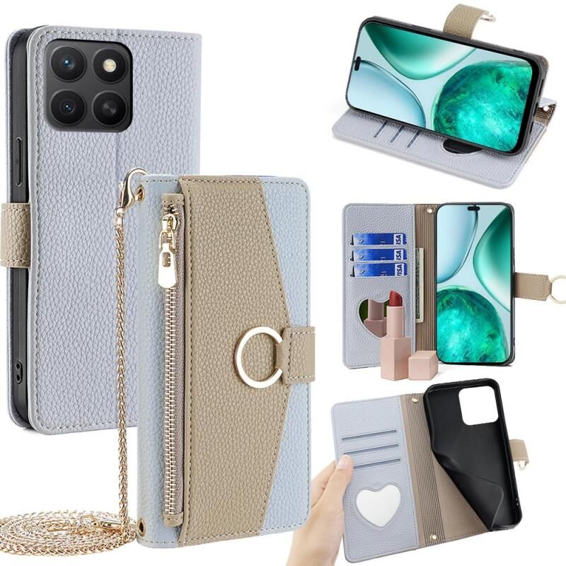 Θήκη κινητού τηλεφώνου Honor X8c 4G, δερμάτινη με υφή λύτσι, για χιαστί (Μπλε)
