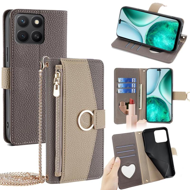For Honor X8c 4G Crossbody Litchi Texture Leather Phone Case(Grey)