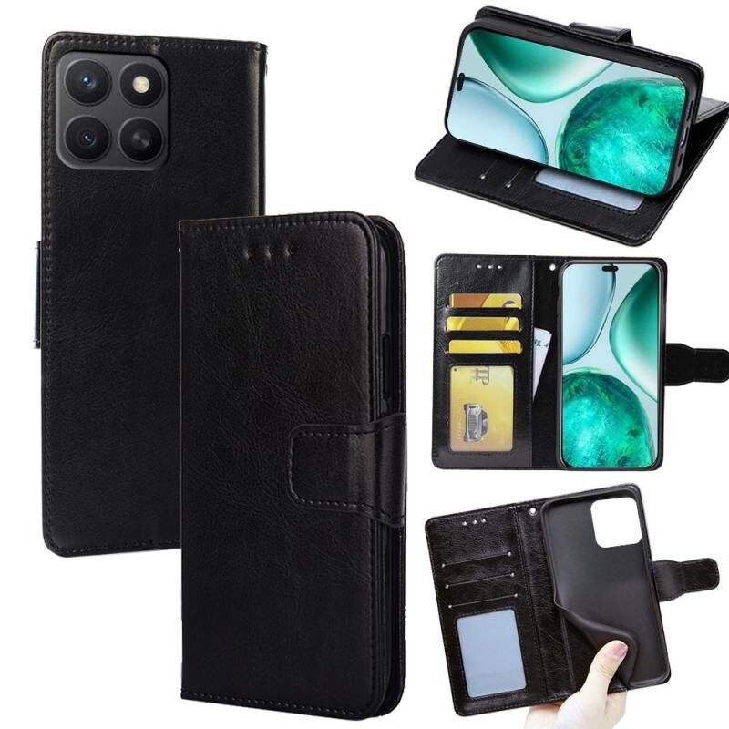 Θήκη τηλεφώνου από δέρμα με κρυσταλλική υφή για Honor X8c 4G (Μαύρο)