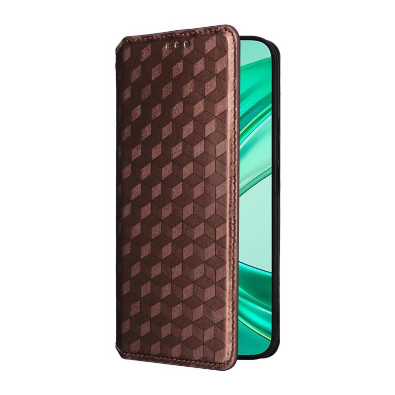 Θήκη τηλεφώνου δερμάτινη αναδιπλούμενη με υφή Cubic Grid για Honor X8c 4G (Μαύρο)
