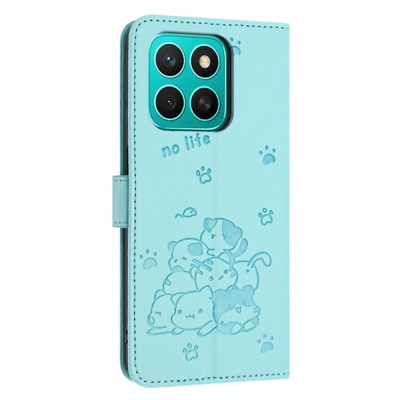 Θήκη τηλεφώνου δερμάτινη με ανάγλυφο γατάκι και κορδόνι για Honor X8c 4G (Μωβ)