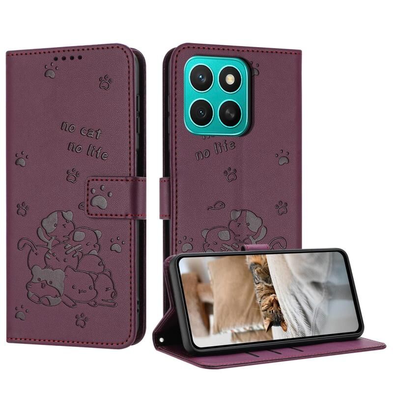Θήκη τηλεφώνου δερμάτινη με ανάγλυφο γατάκι και κορδόνι για Honor X8c 4G (Μωβ)