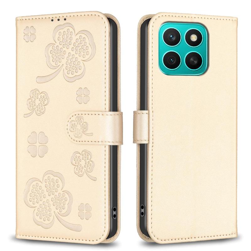 For Honor X8c 4G Four-leaf Embossed Leather Phone Case(Gold)