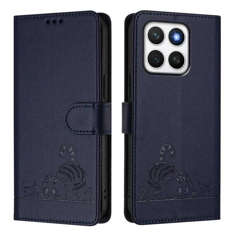 Θήκη τηλεφώνου από δέρμα με ανάγλυφο σχέδιο γάτας και κατσαρίδας για Honor X8c 4G Global με κορδόνι (Μέντας Πράσινο)